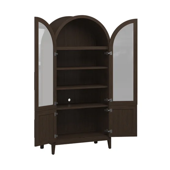 Arch Top and Picture Frame Molding DetailRubberwood Solids with Acacia VeneersAdjustable Display Shelving and Storage Cabinet2 Tempered Glass Door Fronts