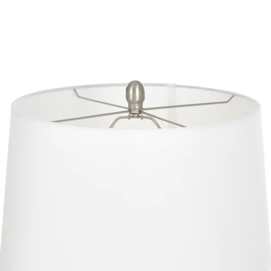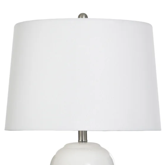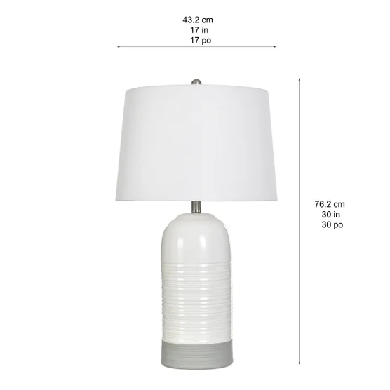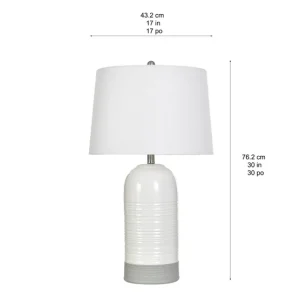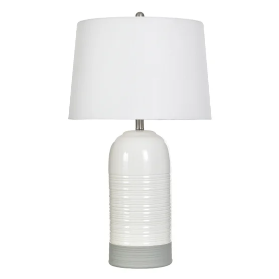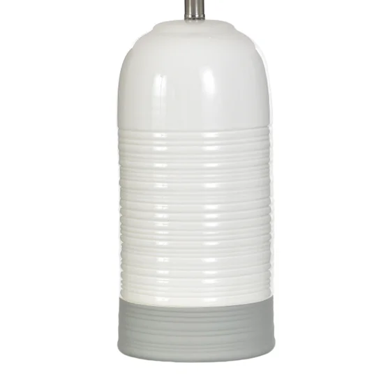 The Bellmore Table Lamp is a stunning ribbed ceramic lamp trimmed in concrete gray at its base, and finished with a beautiful warm white glaze and off-white shade. Both subtle and striking, this lamp is an ideal size for bedside tables, and will be the perfect addition to your home.