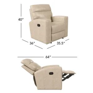This gliding recliner brings a touch of modern style and sumptuous comfort to any room, making it a versatile choice for classic and contemporary settings alike. A sleek design, the amply cushioned back is flanked by two sturdy padded armrests, delivering the perfect balance of clean lines and coziness.