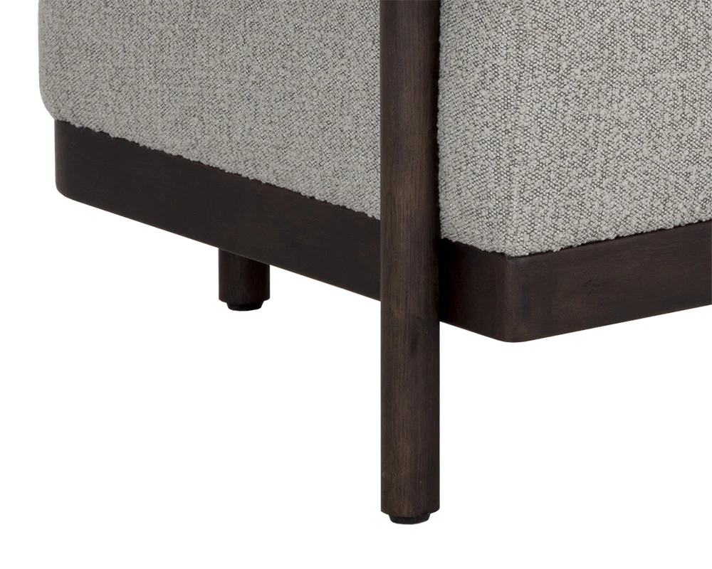With its voluminous contours, the Bromley Sofa is a captivating presence in any living space. Upholstered in our altro cppuccino fabric, this sofa features wide arm and back rests for additional comfort. Brown oak wood base and detailing give a rustic element to the overall design. As wood is an organic, porous material, these pieces will contain natural variation of texture and may also exhibit fine indentations and cracks. Wood pieces will also display a disparity of colour and grain, and visible knots and burls that add to the character of each piece.