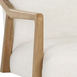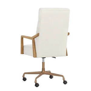 Create a distinguished workspace with the handsome Collin office chair. The exposed natural oak wood arms and brushed gold base offer an airy element while paired with heather ivory tweed performance fabric. Performance fabric is moisture repellent, durable and easy to clean. As wood is an organic, porous material, these pieces will contain natural variation of texture and may also exhibit fine indentations and cracks. Wood pieces will also display a disparity of colour and grain, and visible knots and burls that add to the character of each piece.