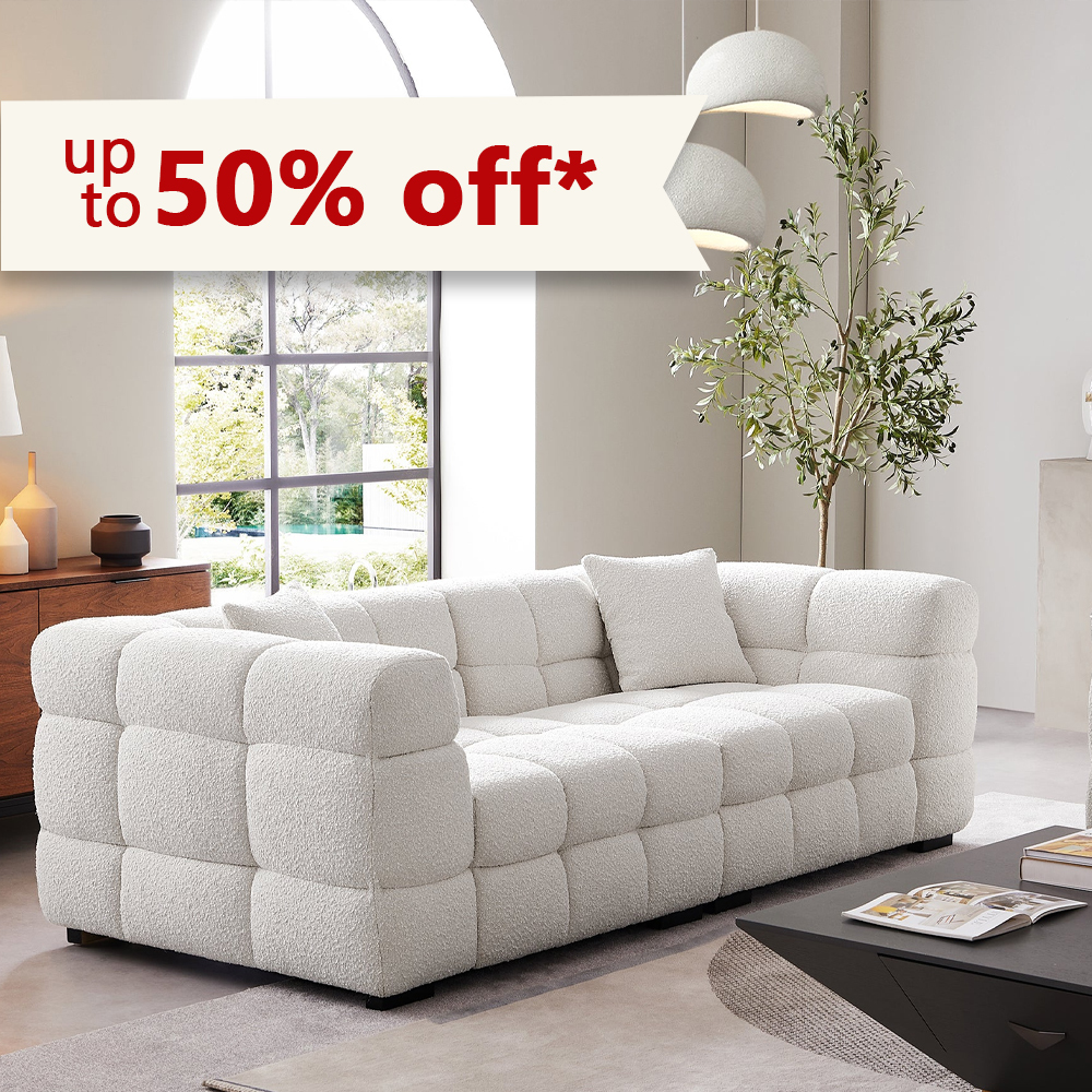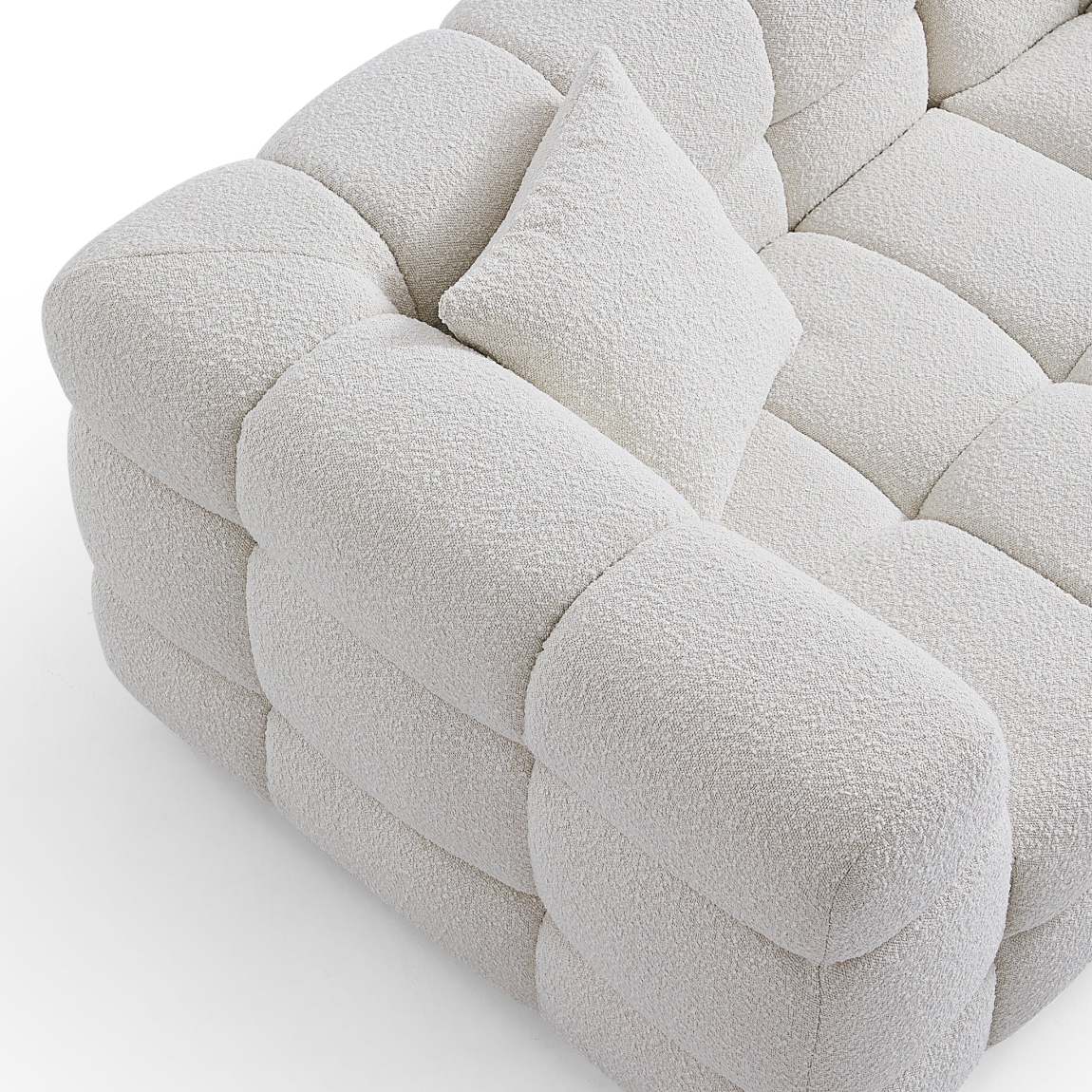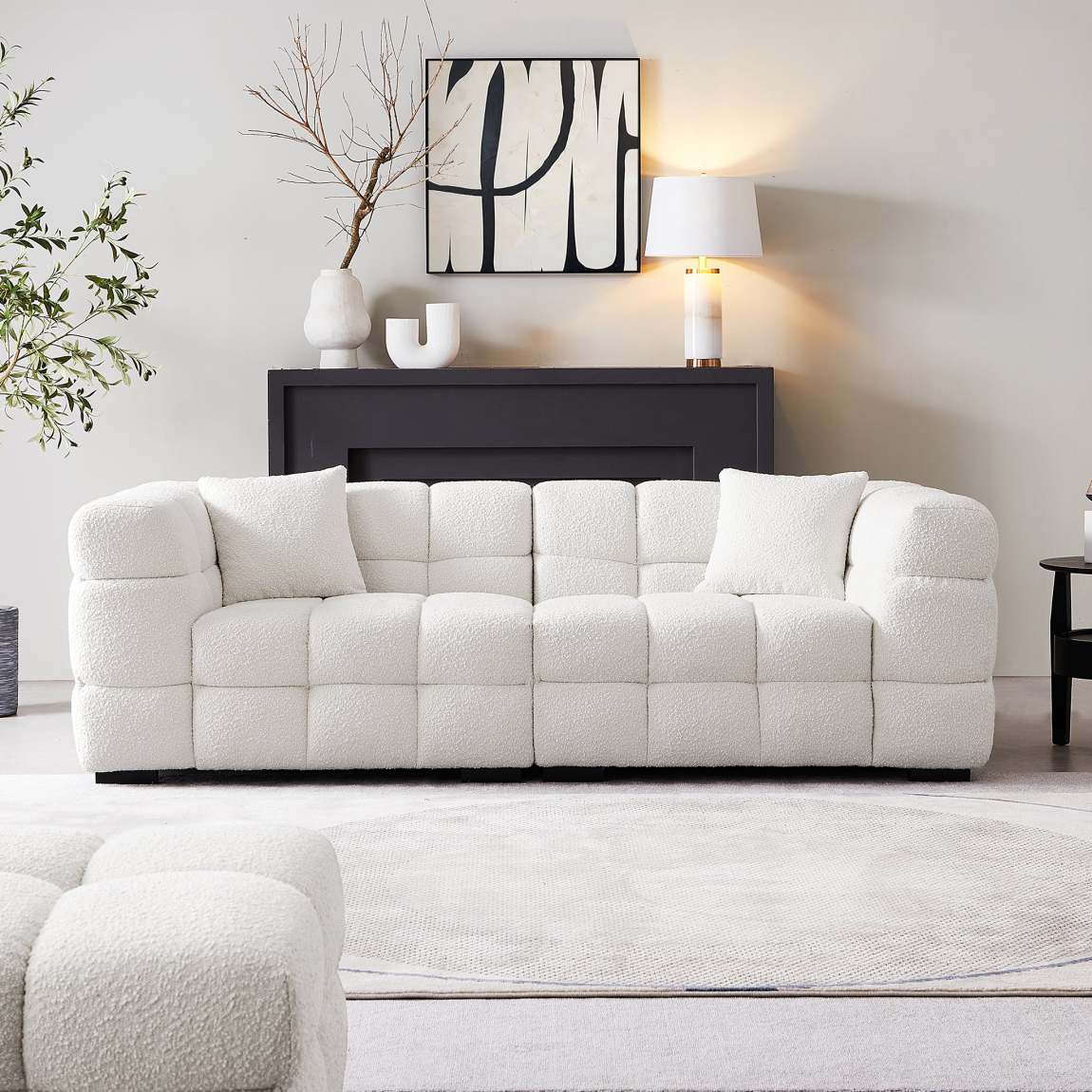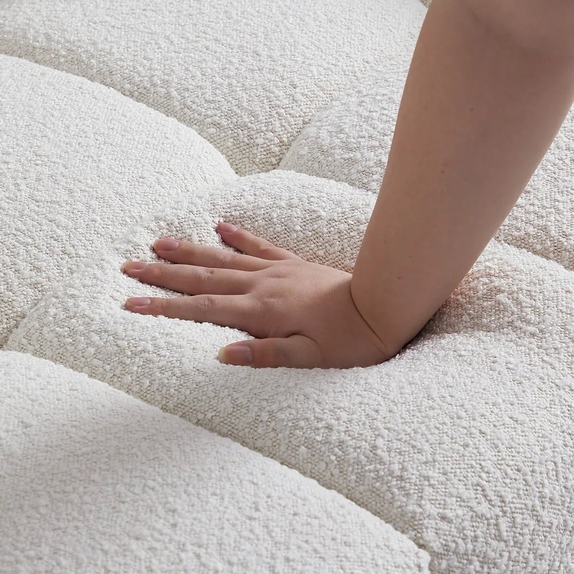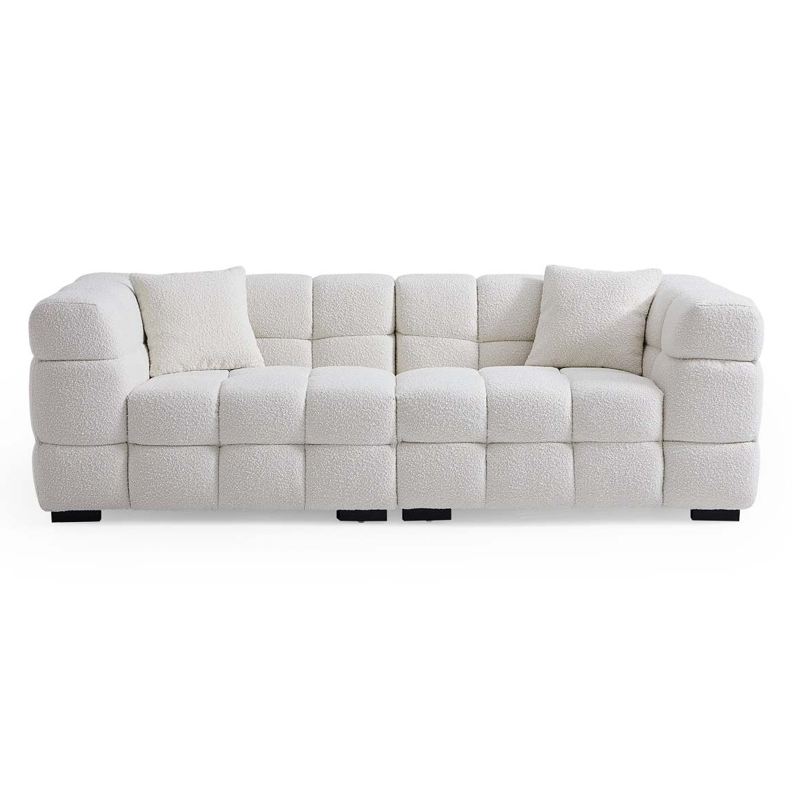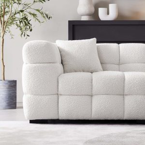 Cushy White Boucle Fabric Tufted Sofa – Ultra-Soft Cloud Sofa with Deep Seats and Textured Finish