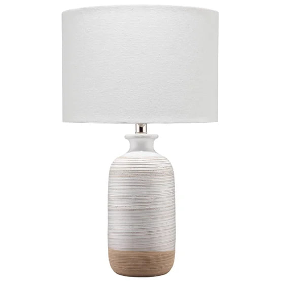 The warm hues and textured glaze of this ceramic table lamp sets a modern rustic feel. The 3-way switch and bulb will allow the perfect amount of ambience to any space.
