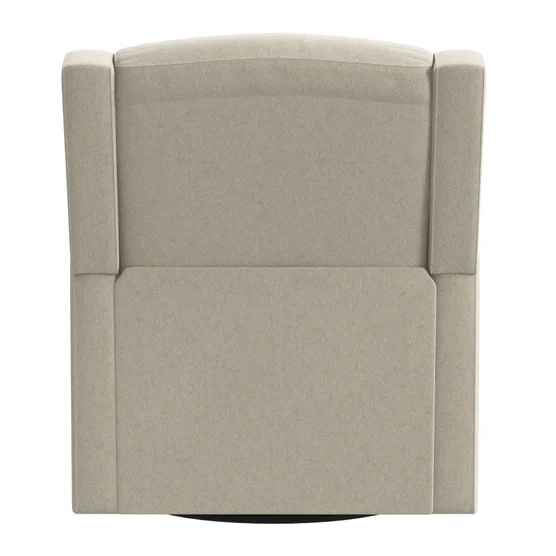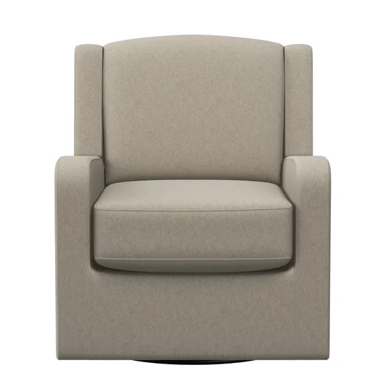 This swivel glider brings modern style and comfort to a room. The gently rounded square back is flanked by subtle side wings that merge with square arms. The back and attached box-seat cushion provide comfort and support. The compact profile of this 360-degree swivel glider makes it a perfect fit for smaller spaces.