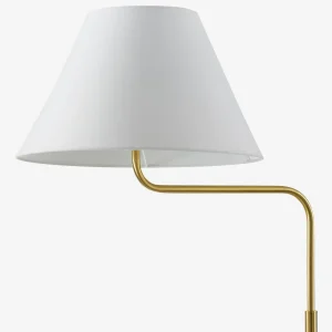 Minimalist lines define the Ellingford floor lamp. The slender stem takes an angular bend, cutting a chic silhouette that makes it the perfect reading lamp next to your sofa or a comfy chair. We love how the brass finish pops against the white shade, offering a versatile addition to modern palettes.