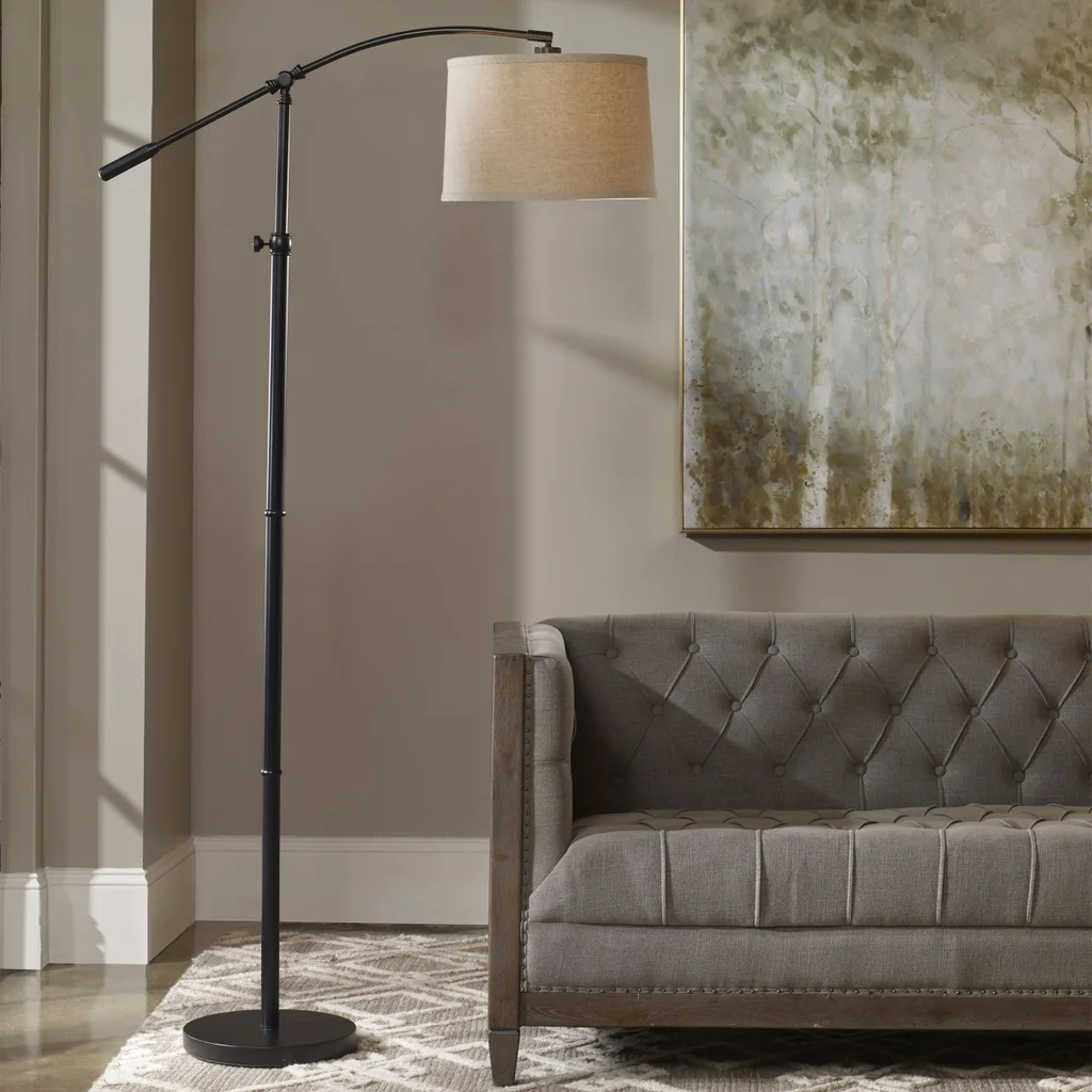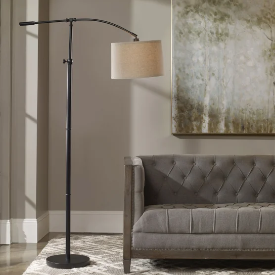 The Jackson Floor Lamp features adjustable height, adjustable arc arm, and shade pivot. The versatile features make it a popular choice to provide ample lighting next to a sofa or chair. The lamp is a safe and stable design with a weighted base.