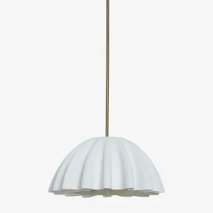 Style a sculptural statement overhead with the Nita pendant light. Oversized pleats bring a clean, pitched form to the white shade—suspended from a slim black rod to create a floating effect over the room. We love this pendant for a space where rounded lines soften a modern edit.