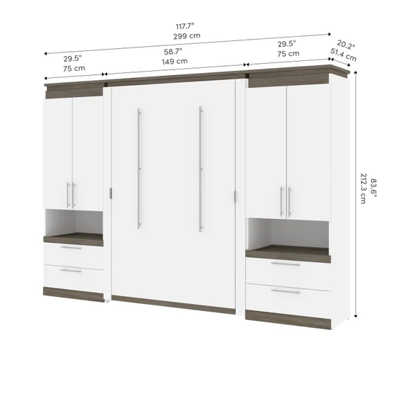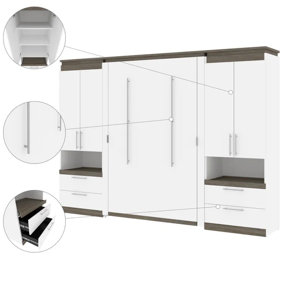 Orion Full Wall Bed with 2 Storage Cabinets and Nightstands
