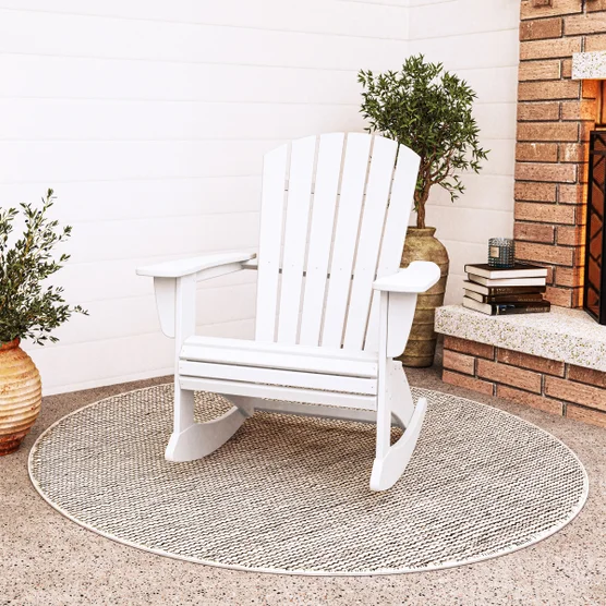 Create an outdoor haven with the comfortable smooth rocking of the Portside Shellback Adirondack Rocking Chair. This timeless rocker features a comfortably contoured seat and back with a curved waterfall front that’s easy on the backs of your knees. Pair a couple of rocking chairs with a POLYWOOD® side table on your front porch or create a spot for friends and family to gather with several chairs on your patio.